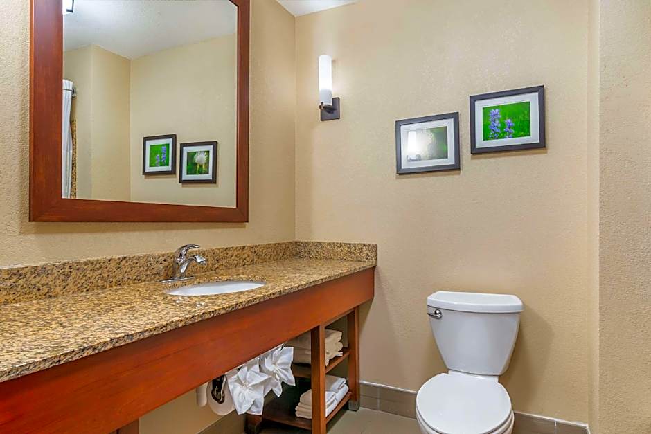 This suite features a cable TV, seating area, microwave, and refrigerator.